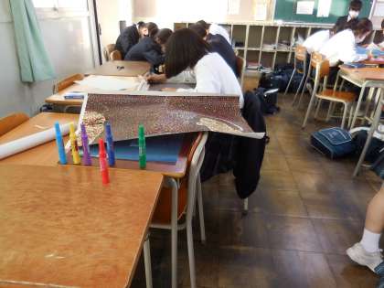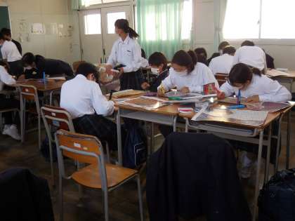 10月27日(水)1年生は文化発表会に向けてモザイクアートの制作を頑張っています。