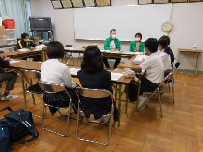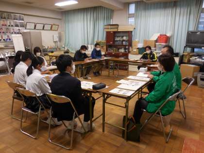 11月1日(月)生徒会のみなさんが西成区役所の方から赤い羽根共同募金についての説明を受けています。