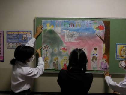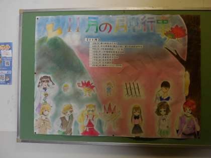 11月1日(月)美術部のみんなさんが11月の行事予定を貼っています。