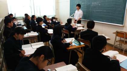 1年生の数学科の授業のようすです。1クラスを2分割し、少人数で授業をしているところです。この時間は、「正の数・負の数」について学習しました。
