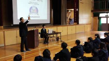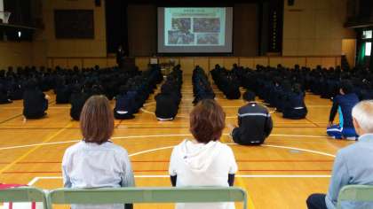 大阪府警機動隊や自衛隊の災害装備の体験・見学後、西成警察警備課の方より、防災講演をしていただきました。地震、津波発生時、どのように行動しなければならないかについて詳しく学ぶことができました。また、講演の最後に、自転車での事故が急増しているので、被害者にも加害者にもならないようにという注意もしていただきました。