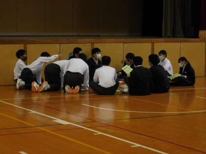 11月9日(水)2年生は職場体験に向けて体育館で各事業所ごとに打ち合わせを行っています。