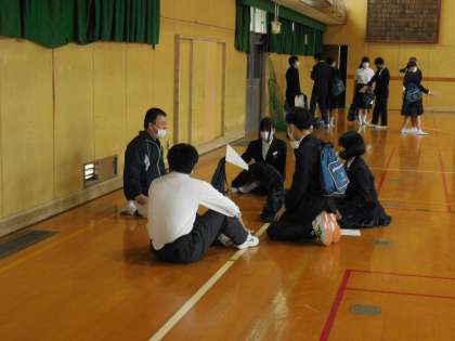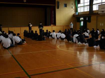 11月10日(水)2年生は12月に行われる職場体験の事業所訪問です。体育館から各事業所ごとに出発します。