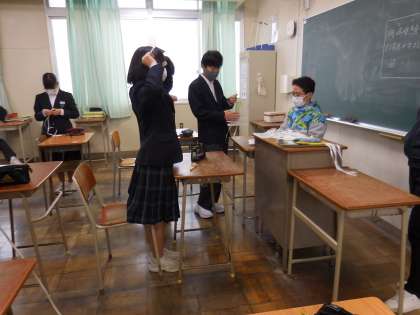 11月11日(木)2年生は職場体験に向けて各自が名札を作っています。