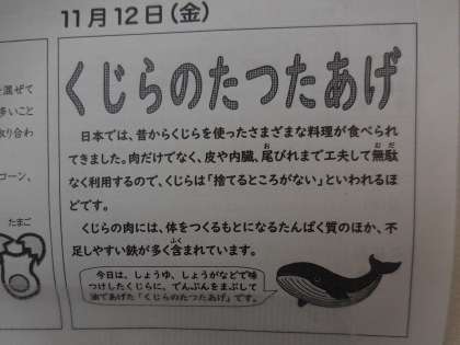 11月12日(金)今日の給食はくじらのたったあげです。