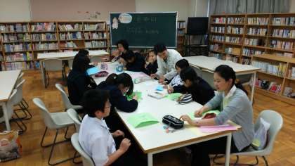 5月13日、カンパニーの活動をしました。本日は、ハングルで自分の名前を書いたり、自己紹介をしたりしました。