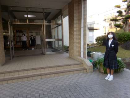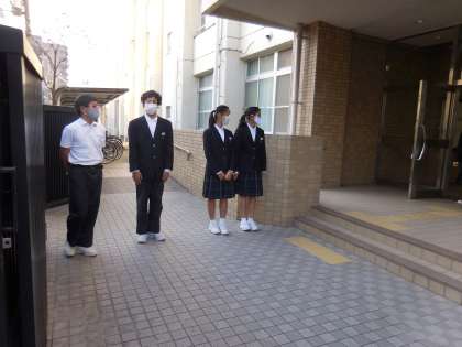 11月15日(月)週明けの月曜日、爽やかな朝です。校門では生徒会のみなさん、玄関入ったところでは野球部のみなさんが挨拶してくれています。門の外では生活委員のみなさんが挨拶してくれています。