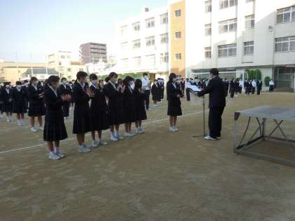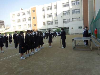 11月16日(火)爽やかな朝です。子ども達は元気に登校しています。今日の全校集会ではバドミントン部へ賞状を渡しました。