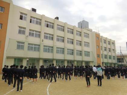 12月21日(火)寒さの厳しい朝ですが子ども達は元気です。全校集会では生徒会のみなさんからから年明け、3学期に書き損じはがきの寄付についての連絡がありました。