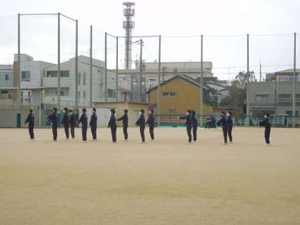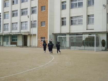 1月12日(水)1組体育です。雪が舞うような寒さの中、元気に頑張っています。