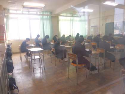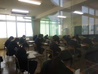 1月13日(木)チャレンジテスト、頑張っています。2年生1組、2組、3組の様子です。