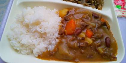 1月17日(月)の給食は牛肉と金時豆のカレーライス、ごぼうサラダ、パインアップル、牛乳です。牛肉と金時豆のカレーライスは牛肉、じゃがいも、金時豆、たまねぎ、にんじん、が入っています。ごぼうのサラダはマヨネーズをかけていただきます。おいしかったです。ごちそうさまでした。