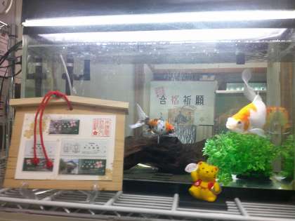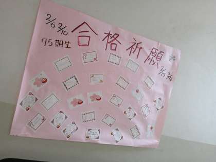 2月4日(金)3年生の受験に向けての合格祈願が張り出されています。管理作業員室の金魚も応援しています。ガンバレ!!