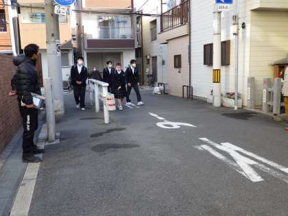 2月25日(金)天気は良いのですが寒い朝です。1、2年生は学年末テスト最終日。です。1年生も2年生も3年生もみんな元気に登校しています。