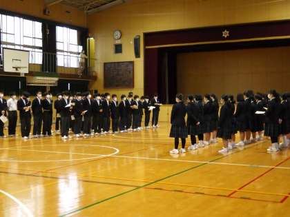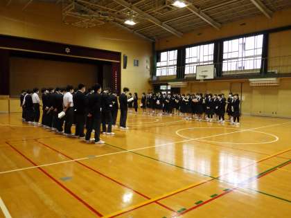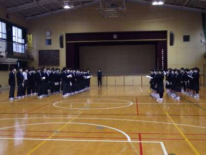 3月2日(火)3年生は体育館で卒業の歌の練習です。頑張っています。