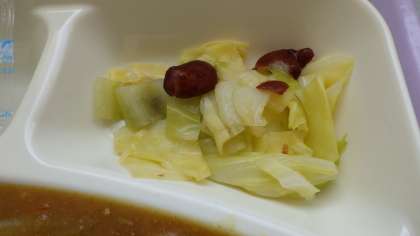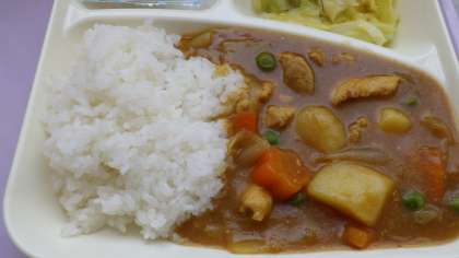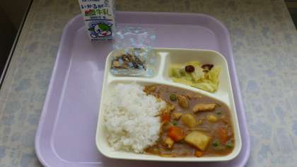 3月2日(火)の給食はチキンカレーライス、ビーンズサラダ、アーモンドフィッシュ、牛乳です。チキンカレーライスは鶏肉、じゃがいも、たまねぎ、にんじん、グリンピース、にんにくが入っています。ビーンズサラダは金時豆とキャベツをあっさり仕上げています。おいしかったです。ごちそうさまでした。