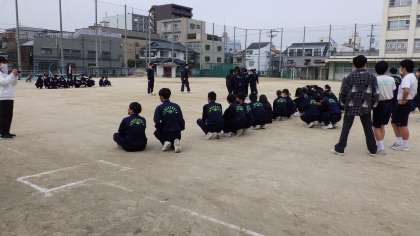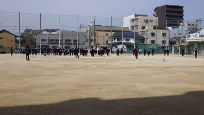 3月4日(金)3年生はオリエンテェーション、楽しい声が運動場に響いています。