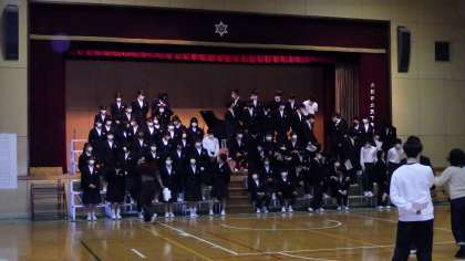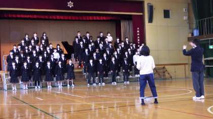 3月4日(金)3年生は卒業式に向けて体育館で歌の練習です。