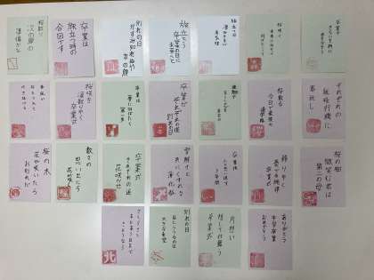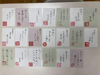 3月8日(火)国語の授業で「卒業」をテーマに俳句を作り、句会を行いました。最後は美術の授業の篆刻(はんこ)とコラボして作品を完成させました。それぞれが卒業の日が近いことをかみしめる授業となりました。