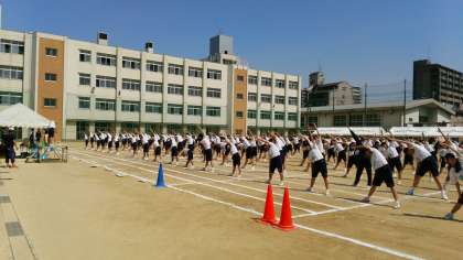 これまでは、各学年ごとに体育大会に向けて練習をしてきましたが、本日は全学年が集まり練習をしました。式典や入場行進、ラジオ体操などが中心でした。その後、各学年に分かれて、学年種目の練習をしました。