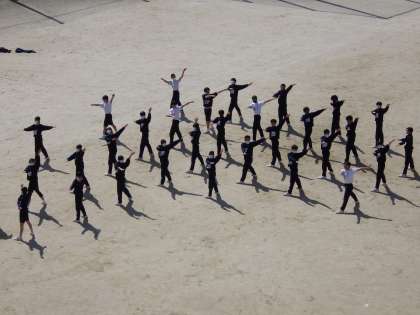 3月15日(火)汗ばむような陽気です。春本番。2年生の体育の様子です。
