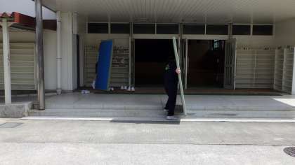 3月17日(木)百人一首大会の準備で体育館に畳みほ運んでいます。