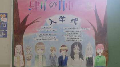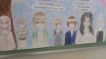 4月7日(木)階段踊り場に美術部のみなさんが作った4月の月中行事が掲示されています。美術部のみなさん、ありがとう。