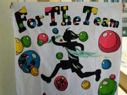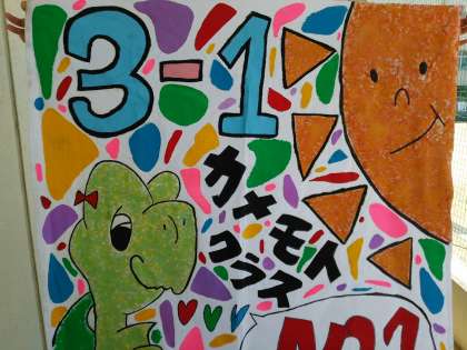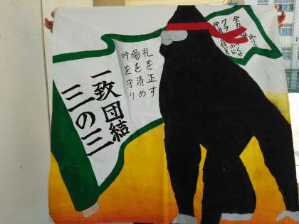 体育大会で使用する3年生各クラスの学級旗です。上から順に1組、2組、3組です。