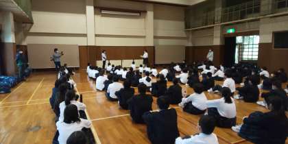 4月15日(金)宿泊オリエンテーション2日目。すべてのプログラムを終えました。退所式の様子です。今から学校へ帰ります。