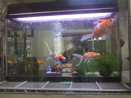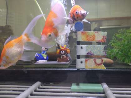 4月19日(水)管理作業員室の水槽に鯉のぼりが現れました。金魚と鯉のぼりが仲良く泳いでいます。
