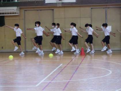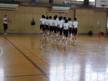 5月16日(月)2年生の男子の体育の様子です。体育大会に向けて頑張っています。