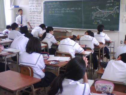 先日より、教育実習生がきています。担当教科は社会科目です。本日は、2年生で教科実習授業をおこないました。(写真左)