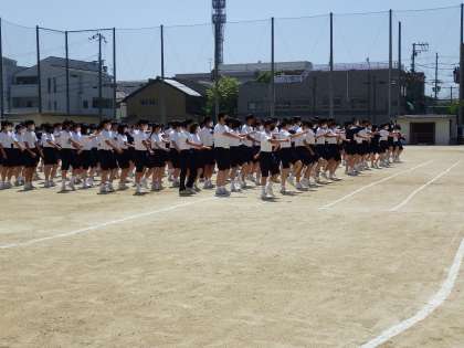 6月2日(木)体育大会全体練習の様子です。かなり日差しがきつく暑かったですが子どもたちはよく頑張っていました。