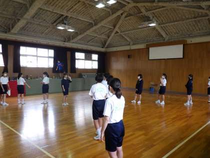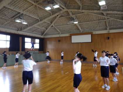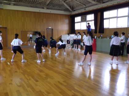 6月6日(月)3年生の学年練習、女子のダンスの様子です。笑顔がはじけています。