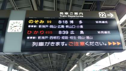 8時18分、新幹線「のぞみ99号」に乗車しました。時間の遅れもなく、順調に運航しています。