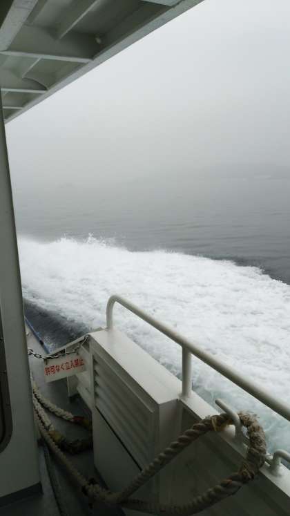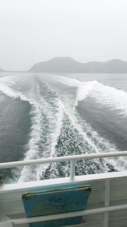 15時15分、高速船で大津島を後にしました。雨がきつくなり、海上には霧が発生しています。しかし