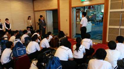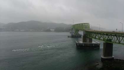 予定どおり、17時にホテル大観荘に到着しました。ロビーから海が見えますが、潮の流れが速く、渦潮も見られるとのことです。