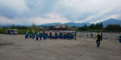 6月16日(木)ラフティングがはじまります。気温26℃、ラフティングにもってこいの気候です。みんな元気です。