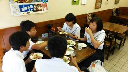 天気が回復し雨があがりました。お土産物を買ったり、食事をしたりなど、ルールを守りながら、班別に行動を楽しみました。