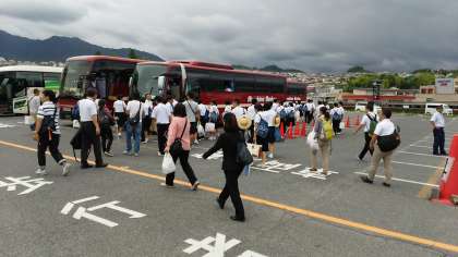 宮島口に帰ってきました。手には、たくさんのお土産を抱えています。これから美川ムーバレーに向かいます。美川ムーバレーでは、地底探検アトラクションを行います。