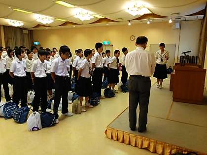 「いこいの村ひろしま」に到着しました。入館式を終え、部屋に荷物を置いた後に夕食となります。