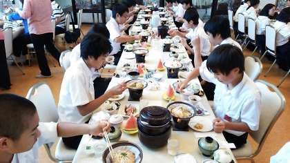 1日しっかり活動し、お腹はペコペコです。広島らしく、「広島焼き」もありました。今日の夕食もとても美味しくいただきました。