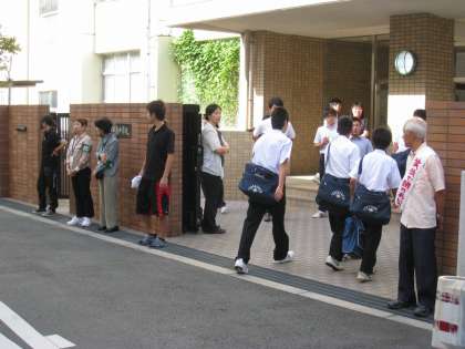 新学期が始まり、夏休み中はお休みをしていた「おはよう運動」が再開されています。毎日実施していますが、月・水・金は地域の方との協働でおこなっています。「おはようございます」と明るい声が正門前に響いています。