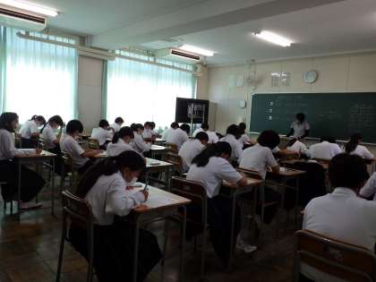 6月29日(水)1学期末テスト、数学、理科、音楽です。1年生頑張ってます。