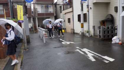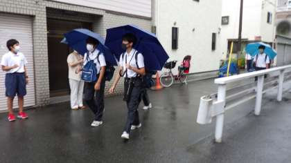7月5日(火)朝から雨がしっかりと降っています。子どもたちは傘をさして元気に登校しています。