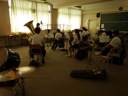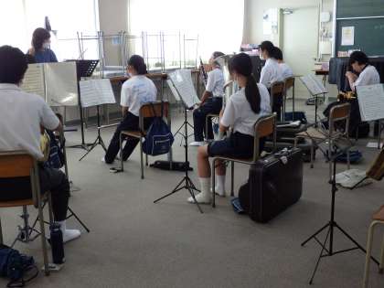 8月2日(火)夏休み、暑い中、頑張っています。吹奏楽部の様子です。