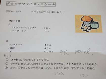 8月22日(月)手作り部のみなさんはカップケーキを作りました。上の写真がレシピです。下の写真は手作り部のみなさんが作った作品です。カップケーキおいしかったです。