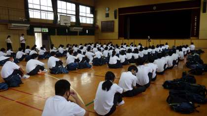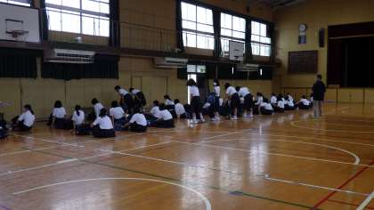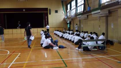 9月6日(火)2年生は明日からの一泊移住の事前指導です。男女に分かれて荷物の点検です。