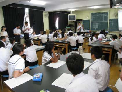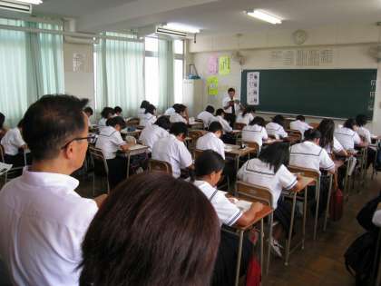 9月11日、大阪市立中学校教育研究会の第7ブロック(西成区・住之江区・住吉区)研究発表会がおこなわれ、国語、理科、道徳の研究授業を本校1年生で実施しました。本校教員を含め、100名あまりの教員が研修を深めました。たくさんの他校教員が参観していたので、生徒もいささか緊張していました。