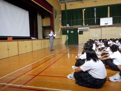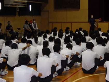 9月15日(木)6限目は全学年が体育館でお話を聞きました。